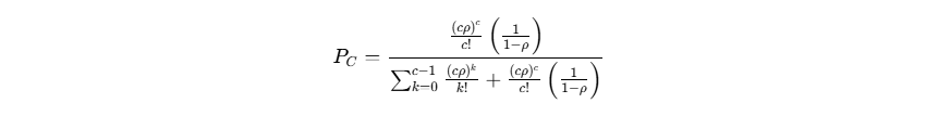 ), são os determinantes do colapso ou da fluidez do sistema. A probabilidade de uma chamada ser forçada a entrar em fila de espera ao invés de ser atendida de pronto é expressa pela fórmula de Erlang C: